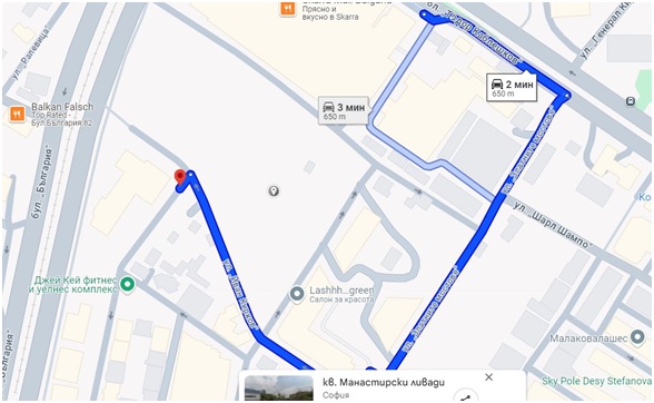 Вход откъм кв. „Манастирски ливади“ към паркинга на МЦ „Неовитро“